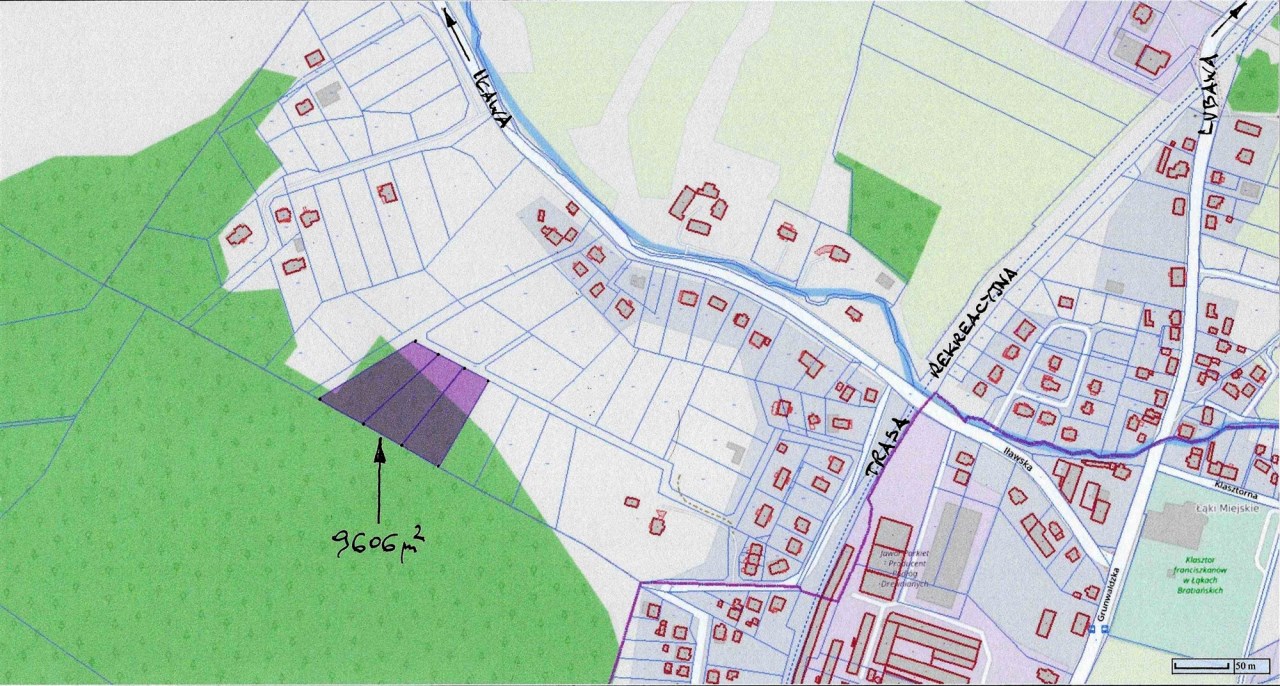 - 3 działki rolno / leśne o pow. łącz. 9606 m2 w 1 rozłogu. Bez Planu Miejscowego.